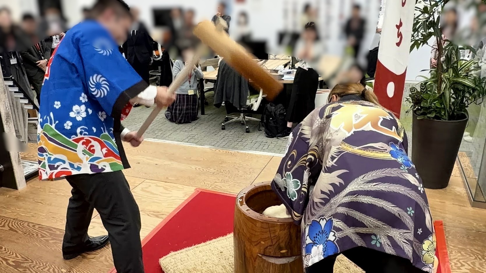女性のお客様も大きく振りかぶり、しっかりお餅を搗くことが出来ました!