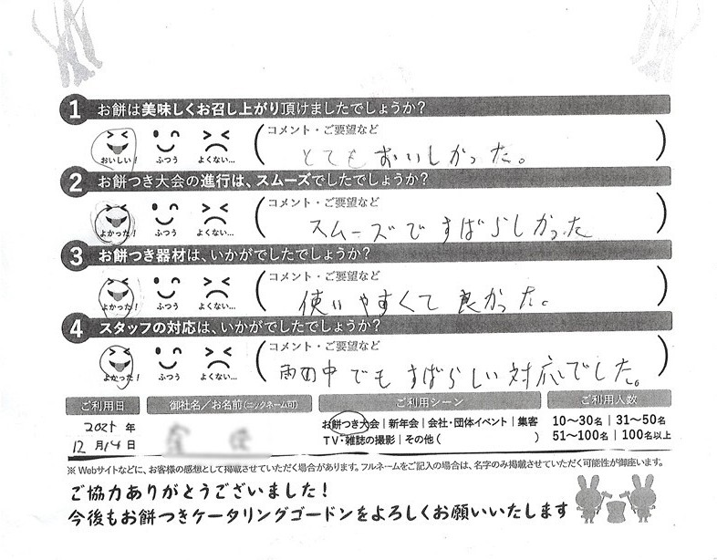 お手伝いのスタッフもこちらのアンケートを見て、良かった!!と話していました😊