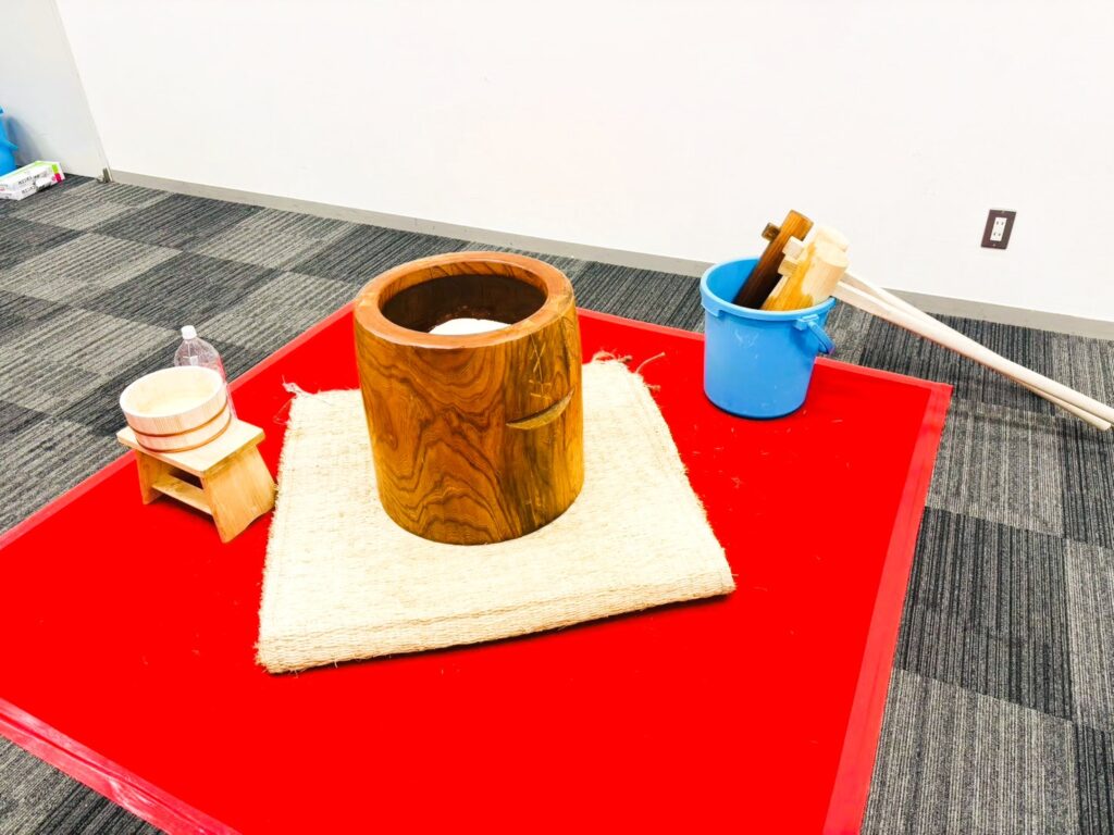 ・お餅つきを始める前に、臼をお湯で温めておきましょう。